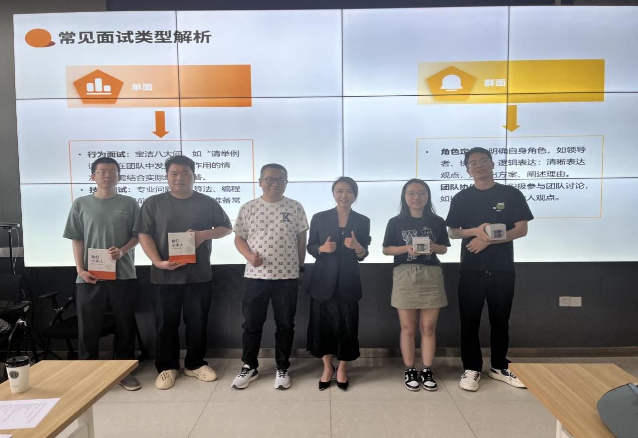 在简历指导环节,任思宇系统解析了模块化简历的构建逻辑,强调岗位需求导向的表述方法。她强调,简历不是“堆砌”,而是“展现”,每一个模块都应服务于岗位需求。在面试指导环节,张林林围绕“技术类岗位如何展现实力”讲解了面试中的行为面、群面、专业问答,并为现场同学传授了“面试官视角”下的评判标准。在模拟面试环节。讲师现场随机抽取四位同学进行模拟面试,并对每位同学的简历、自我介绍和项目经历进行了深度剖析,针对面试过程中出现的“问题导向意识”“多元化自我介绍”以及“场景化问题反馈”等方面提出了改进意见,现场氛围紧张而充实。本次讲堂设置自由提问与技术答疑环节,参与者就行业发展趋势、岗位能力要求等问题与讲师展开交流,并且还以答题互动形式发放纪念品。