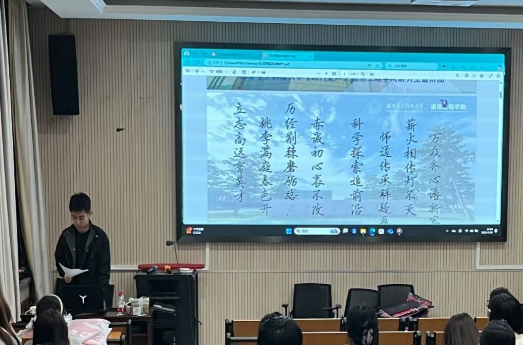 (通讯员 周惠文)为传承红色基因、赓续西电精神,yl6809永利官网联合电子工程学院“时代之声”研究生宣讲团于4月26日在主楼报告厅举办《电波传薪,通向未来》主题宣讲会。六十余名研究生齐聚一堂,共同聆听西电人的初心故事。