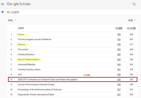 图3Google Scholar热门出版物排名