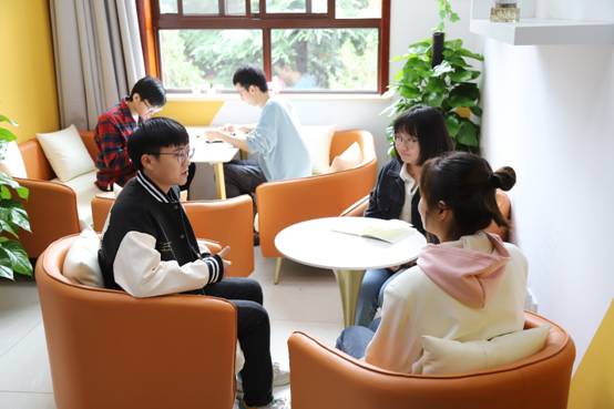 2021级博士研究生任萌萌同学提到,有时候在实验室做科研累了,或者和同学讨论问题,都喜欢来这边沙发区,感觉温馨舒适,给我们的生活增添了很多乐趣。