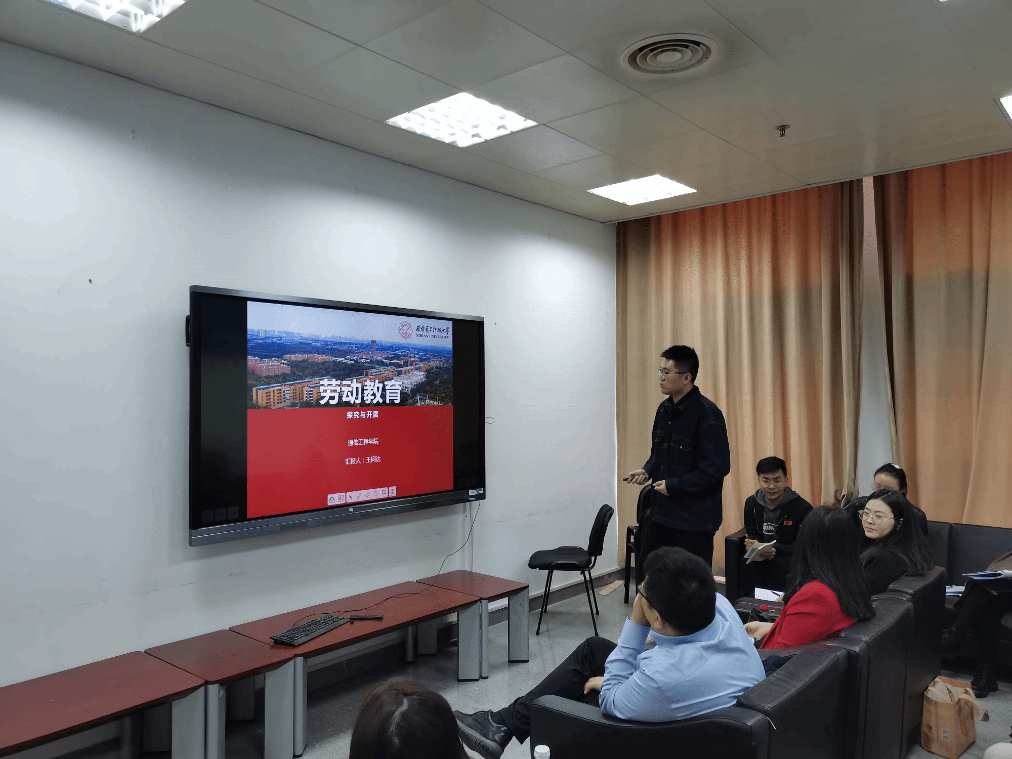 会上,2018级专职辅导员马蕊就结合学院特色做好新时代美育育人工作与大家进行交流。她介绍了近年来国内外关于美育育人方面工作开展和研究情况,总结了学校、学院在美育方面的推进措施,通过举办例如瓦当艺术展博会、邀请西安鼓乐进学校、与西安美术学院联动开办艺术展等美育活动,以亲身体验、氛围融入的形式引导学生理解并感受艺术之美及中华传统文化,并带领大家共同探索“美育应该如何与学科特色以及人工智能相结合,用科技的手段让学生感悟人文自然之美”的问题。随后,2019级专职辅导员王同达做了关于劳动教育的专题分享。他通过对比国内外关于劳动教育的研究和实施现状,梳理国内重点高校开展的特色劳动教育活动,总结展示学校及学院的劳育亮点工作,深入分析当前劳动教育遇到的问题并提出相应建议举措。