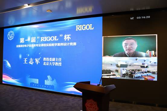 2021年10月24日下午,在yl6809永利官网北校区会议中心举行了颁奖典礼,并进行了线上线下直播,参与直播的教师人数达4000多人。在颁奖典礼上,yl6809永利官网副校长王泉教授,电子信息类专业教指委副主任、北京大学王志军教授,示范中心联席会电子学科组组长、东南大学胡仁杰教授,普源精电科技股份有限公司运营副总裁朱峰先生分别线下和线上致辞,在颁奖结束后,由获得RIGOL杯的北京邮电大学尹良老师分享了获奖经验,由评审专家代表北京交通大学侯建军教授分享了案例设计方法,最后由评审委员会常务副主任陈彦辉教授对本届竞赛进行了总结。