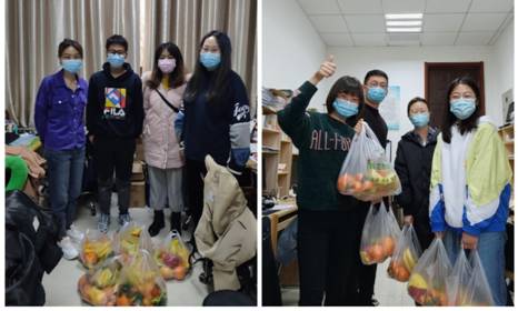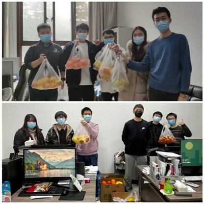 一大早,在支部委员的协调组织下,实验室学生齐心协力,将水果搬运至各自实验室,并有序发放领取。