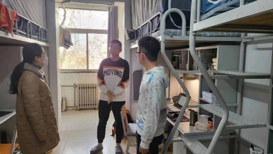 李赞一行先后走访了北校区2022级中英班学生宿舍和研究生宿舍,与同学们亲切交流互动,让同学们感受到通院大家庭的温暖。李赞详细询问了同学们寒假期间返乡情况,深入了解了同学们返校思想状况以及生活、学习、科研等方面情况,与学生们进行了面对面交流,并就学生关心、关注的问题进行了现场回应。李赞充分肯定了同学们表现出来的良好精神风貌,她希望同学们继续认真保持,并提醒同学们要时刻注意人身财产安全,严格遵守校规校纪,以更加积极饱满的学习状态投入到新学期的学习生活中,开启新学期新征程。