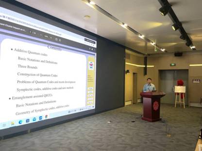 紧接着,李瑞虎做了题为《On Some Problems of Quantum Error - correcting Codes》的学术报告,报告中指出量子纠错码(QECCs,QCs)在量子计算和量子信息处理中发挥着重要作用。并对其团队近年来在量子通信领域所做的理论研究进行了详细介绍,同时还介绍了QECCs的应用并提出了一些研究问题。