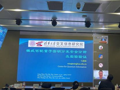 接下来,马雄峰对《模式匹配量子密钥分发安全分析及实验验证》进行了详细介绍,他在报告中提出模式匹配量子密钥分发在不需激光器锁频锁相的条件下可以实现远距离安全成码且在城域距离有较高成码率,极大地降低了协议实现难度,对未来量子通信网络构建具有重要意义。