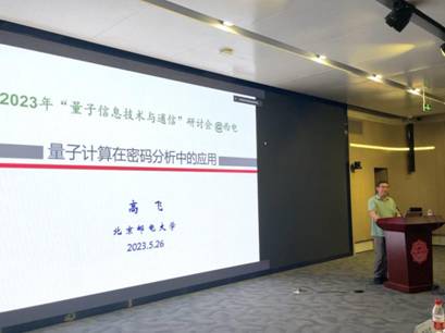 随后进入学术报告交流环节。首先,高飞分享了《量子计算在密码分析中的应用》,报告通过综述量子计算密码分析领域的相关进展,包括量子计算对公钥密码、分组密码、Hash函数的影响,以及实现相关量子算法所需的量子资源估计与优化结果,对量子算法进行了深入系统的总结。
