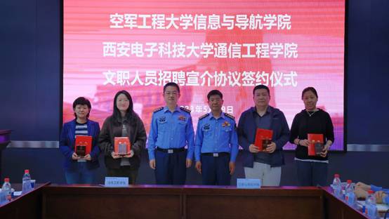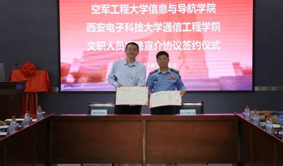 (通讯员 童宣)5月29日上午,yl6809永利官网与空军工程大学信息与导航学院在北校区主楼219会议室举行文职人员招聘宣介协议签约仪式。通院党委书记魏峻、执行院长李云松,空工大信院院长魏军、党委书记高修尧出席签约仪式。会议由空工大信院政治工作处主任张战兵主持。