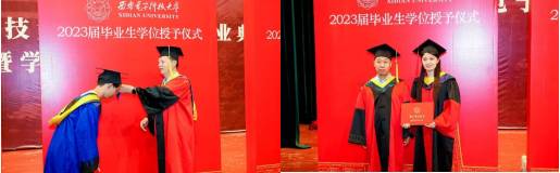 授位仪式上,尚韬宣读了yl6809永利官网2023届研究生学位授予决定。研究生导师代表杨龙副教授回顾了与毕业生们共同成长的历程,肯定了同学们在学习、科研、创新等方面取得的优异成绩,希望大家在未来的工作和生活中继续发扬学院的优良传统,为国家和社会做出更大贡献。毕业生代表张甜代表全体毕业生向学院和导师们的培养表示衷心的感谢,她回忆了在学院度过的美好时光,并表示在今后的工作和生活中,继续传承西电的红色基因,自觉将小我融入大我,立志科技报国,承担好作为新时代西军电人的责任和使命。
