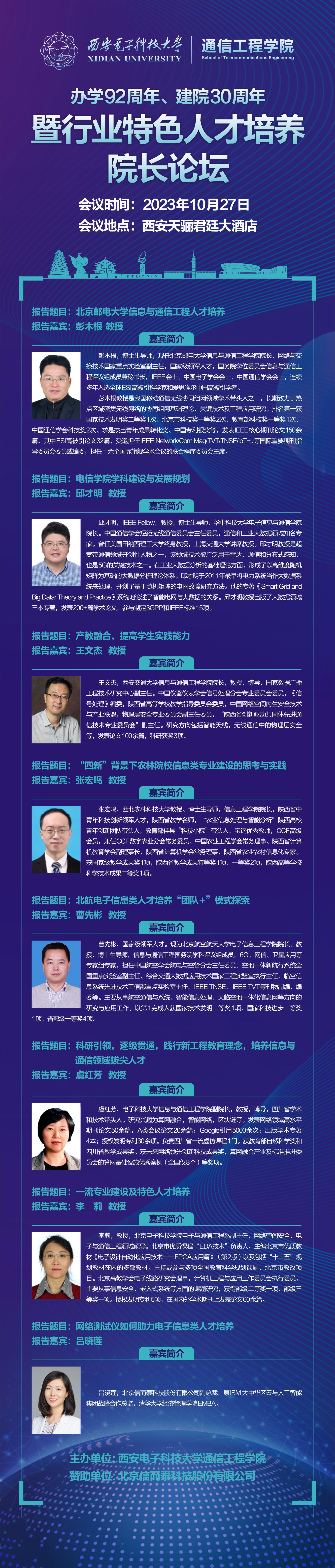 为深入学习党的二十大精神,全面贯彻党的教育方针,落实立德树人根本任务,推动我国电子信息类高校学科建设内涵式发展,全面提高人才自主培养质量,特举办yl6809永利官网办学92周年、建院30周年暨行业特色人才培养院长论坛。
