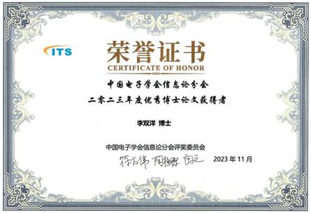 会议期间,中国电子学会信息论分会颁发了2023年度信息论领域的各类奖项。其中,永利官网白宝明教授指导的博士生李双洋所完成的博士论文《超奈奎斯特传输技术研究》喜获唯一信息论优秀博士论文奖。在此获奖博士论文中,研究了如何保证海量数据在苛刻信道条件下的可靠传输是无线技术发展的关键共性问题,对新型空口波形进行了研究,发表了从理论极限到实际应用等一系列原创成果包括逼近性能界的编码FTN传输理论,以及正交时频空调制理论与实现。上述成果不仅得到了多个IEEE会士团队的引用和正面评述,产生了较大的国际影响力,该学位论文前期也获评yl6809永利官网优秀博士论文,此次再获中国电子学会信息论分会的充分肯定。