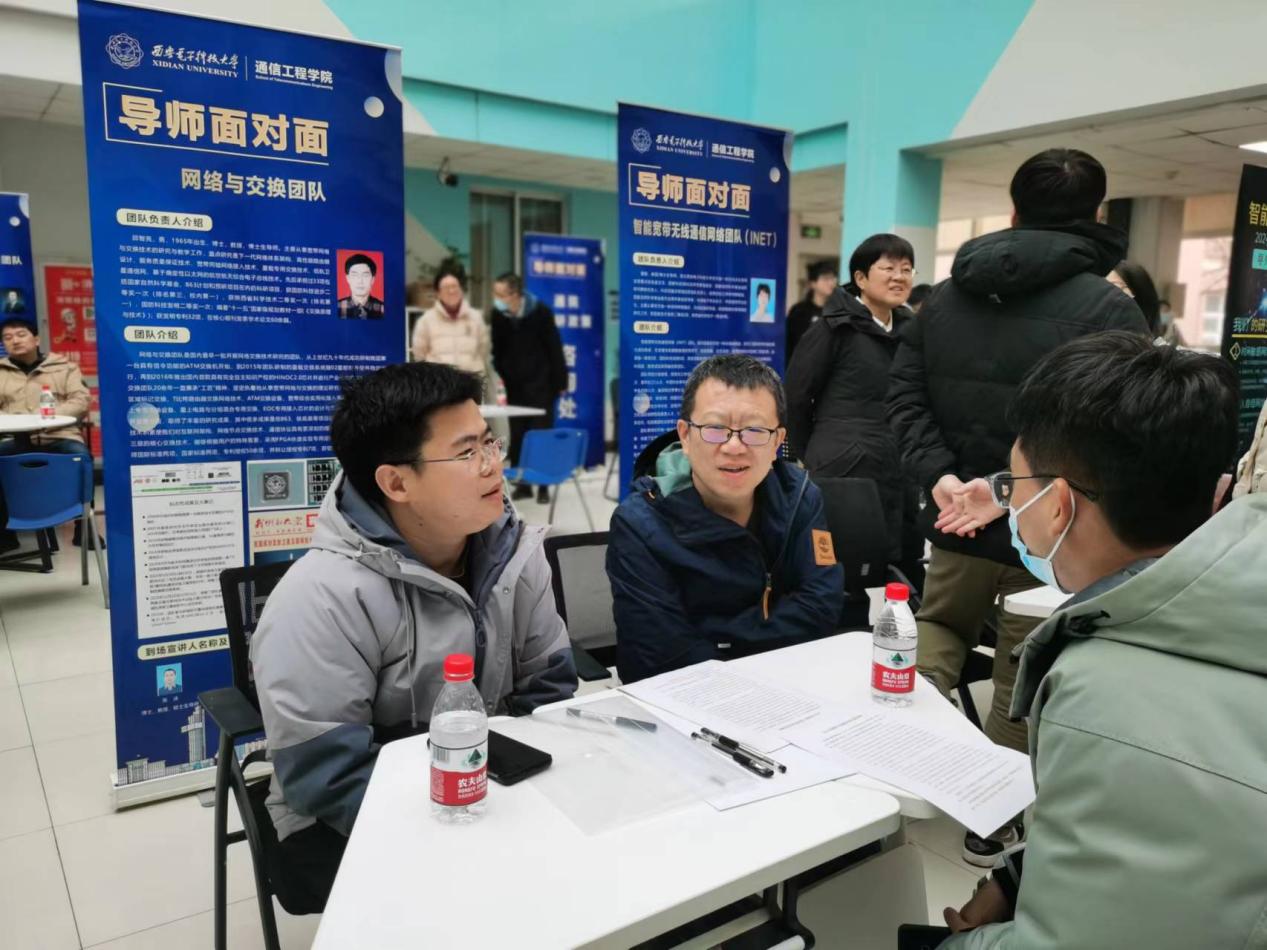 活动现场氛围热烈。各导师团队结合自身研究领域和团队人才培养情况向同学们做了一一介绍,并就同学们普遍关心的团队科研情况、通信前沿技术及就业前景等方面问题与同学们进行了一对一深入交流。导师们勉励同学们要坚定信心,主动夯实基础、努力提升课程成绩,同时,要重视实践动手能力和科研能力的锻炼,全方位多层次地发展自身综合能力,为即将到来的研究生阶段打下良好的基础。