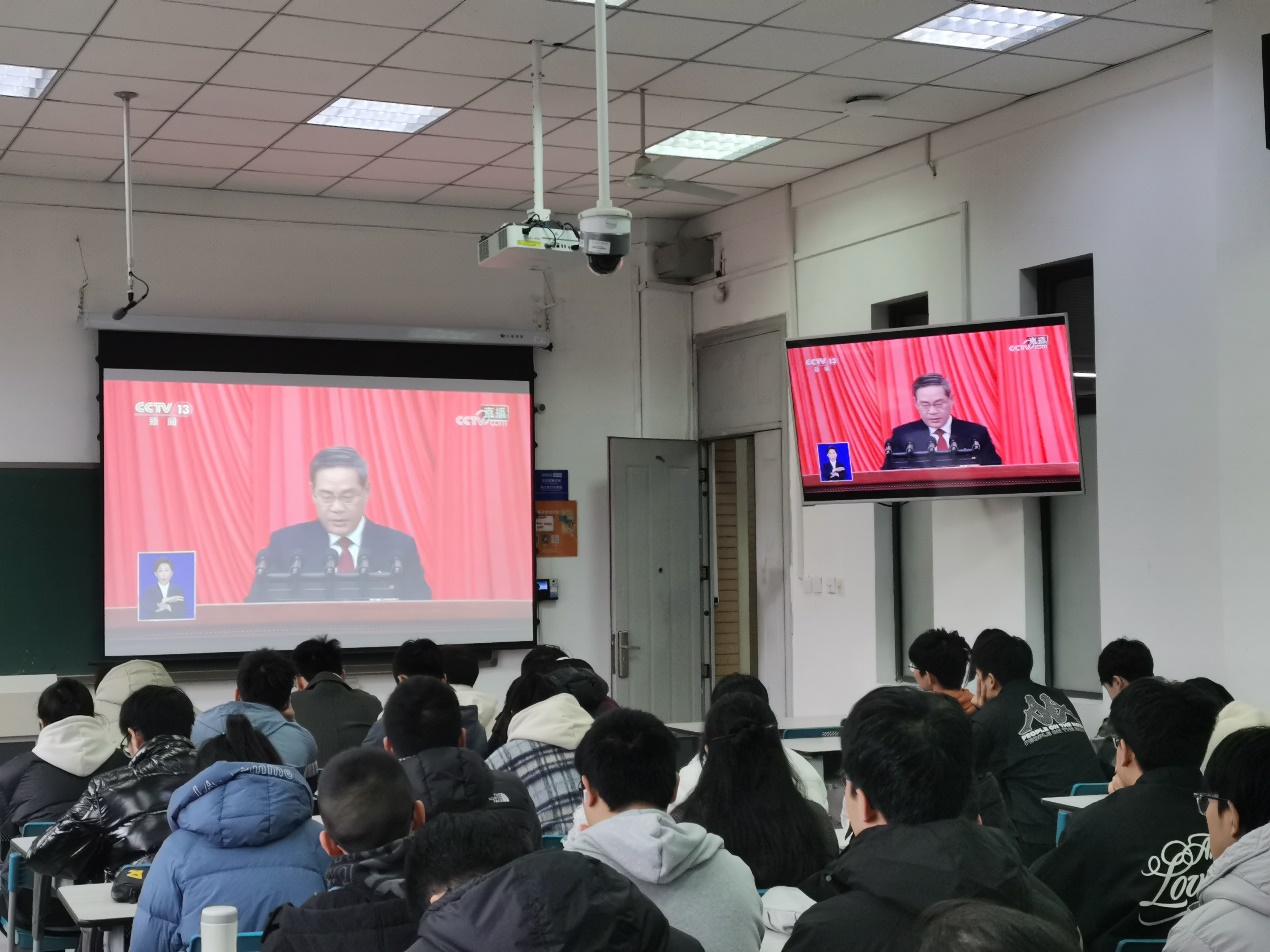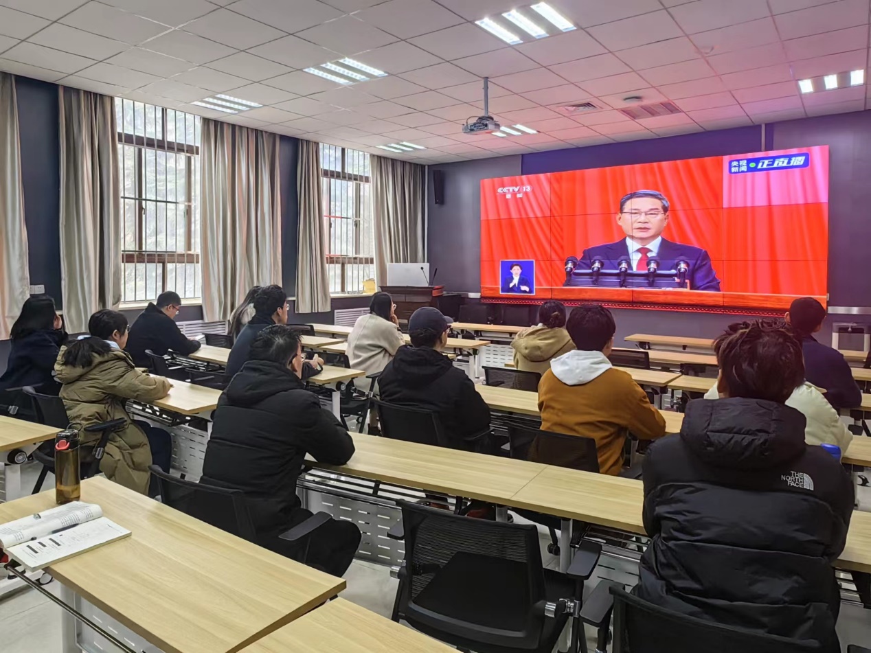 (通讯员 王思阳)3月5日上午9时,十四届全国人大二次会议在北京人民大会堂开幕,国务院总理李强代表国务院向十四届全国人大二次会议作政府工作报告。yl6809永利官网党委以多种形式组织学院全体师生观看收听开幕会。学院面向全体教职工设立了线下观看会议室,并以支部为单位,结合“三会一课”,组织学生通过电视、网络、手机客户端等多种途径深刻学习领会大会精神。