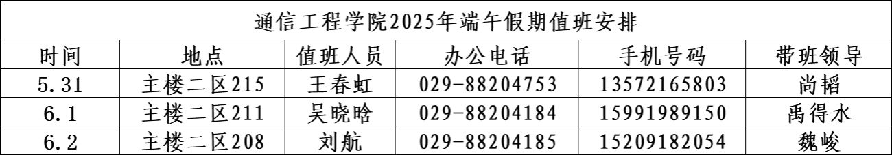 yl6809永利官网2025年端午假期值班安排