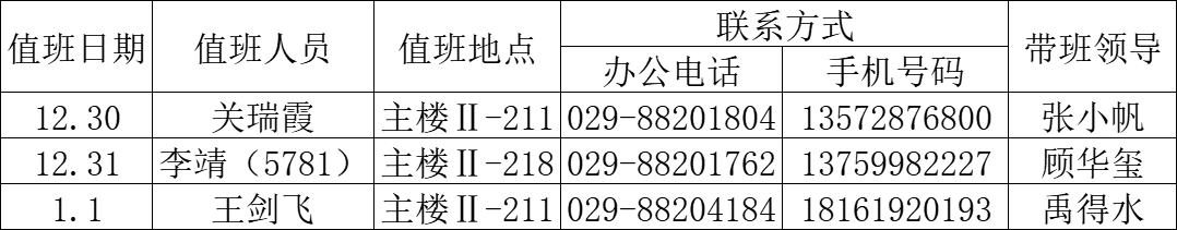 yl6809永利官网2024年元旦假期值班安排