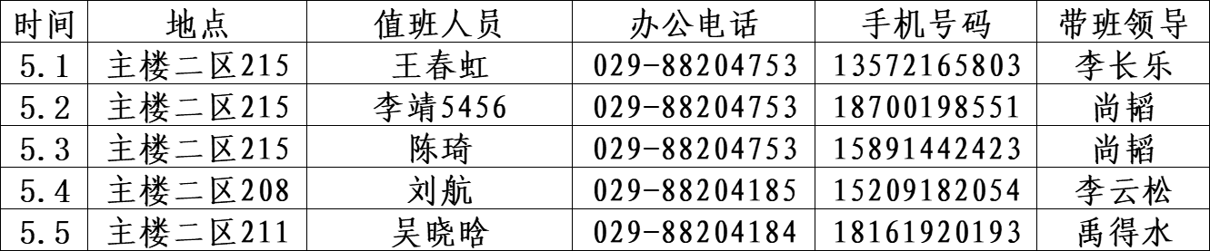 yl6809永利官网2024年五一假期值班安排
