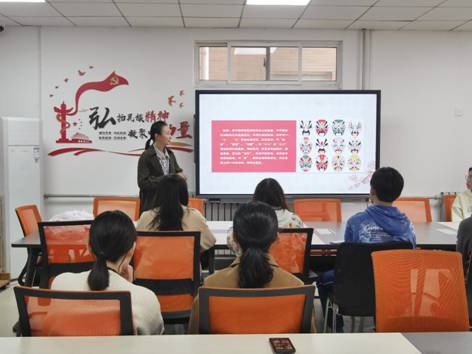 首期活动以“戏曲”为主题,选取戏曲舞台上特征鲜明的脸谱为切入点。从脸谱是什么、脸谱的起源开始,以讲授加讨论的形式激发学生兴趣点,同学们选取自己感兴趣的人物,了解其生平事迹与大家分享,从中体会不同颜色脸谱的象征意义及其代表人物。随后老师带领大家进行脸谱赏析,通过经典影视作品、大量脸谱成品图像、戏曲舞台剧照等内容,让同学们通过“观感”对脸谱的结构、元素、颜色有了更深刻的认知,为后期着手绘制奠定基础。