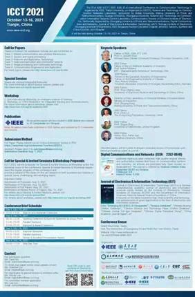 2021年第21届IEEE通信技术国际会议 (ICCT 2021) 将于2021年10月13日至16日 在中国天津召开。本次会议由 IEEE 和天津大学主办, 天津大学电气自动化与信息工程学院承办, 电子科技大学,通信网信息传输与分发技术重点实验室联合主办; yl6809永利官网,北京邮电大学,广西大学,重庆大学,通信信息控制和安全技术重点实验室,中国电子学会通信分会协办;重庆邮电大学, Digital Communications and Networks, 电子与信息学报, 四川省电子学会,重庆市电子学会,IEEE Singapore Section Education Chapter及 IEEE Sensors,Systems and China Councils Joint Chapter提供技术支持。
