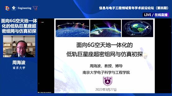 学术交流环节,南京大学周海波教授介绍了团队近年来在6G空天地一体化网络专用仿真平台的实践与探索,团队针对当前热点的大规模星座超密组网理论与关键技术研究,提出了一种轻量级超大规模低轨卫星网络仿真架构,为6G空天地一体化与大规模低轨星座超密组网中的关键技术评估以及重要方法验证提供新思路和新方向。