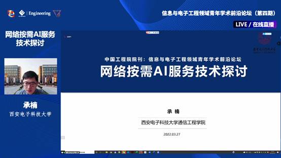 (通讯员:晁熙涵 曹锴郎)2022年3月27日,中国工程院院刊“信息与电子工程领域青年学术前沿论坛”第四期“新型通信网络前沿技术论坛”成功举办。中国工程院院士、yl6809永利官网段宝岩教授,ISN国家重点实验室主任盛敏教授,yl6809永利官网执行院长李云松教授,《Engineering》期刊执行副主编丁宁,《Frontier of Information Technology & Electronic Engineering》期刊编辑部主任翟自洋以及来自南京大学的周海波教授、山东大学于东晓教授、南京航空航天大学董超教授、大连理工大学赵楠教授、浙江大学黄崇文研究员、yl6809永利官网承楠教授作为报告嘉宾出席了此次论坛。承办单位yl6809永利官网副院长李长乐教授、ISN国家重点实验室副主任王子龙教授担任论坛主持嘉宾。